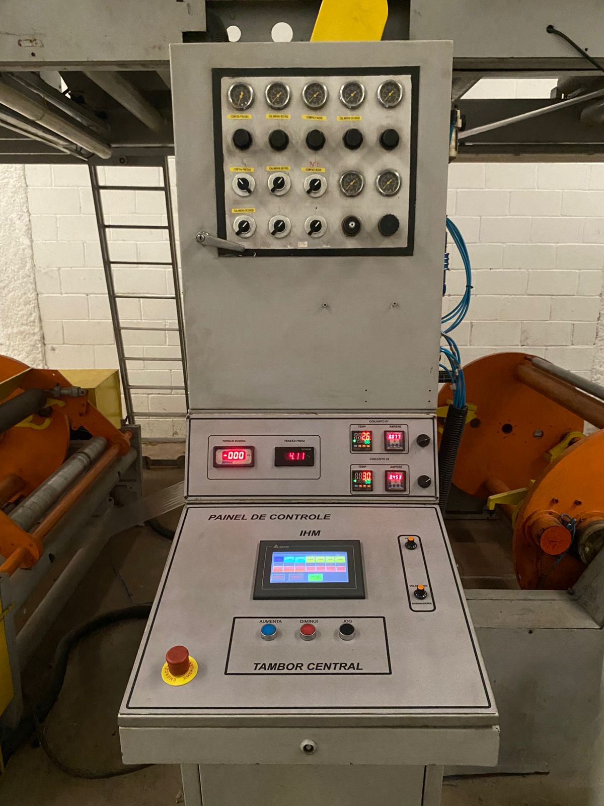 - Diâmetro máximo Desbobinador: 800 mm, 2 eixos expansivos de 3 polegadas, com sistema de troca automática, porém encontrasse desativado.