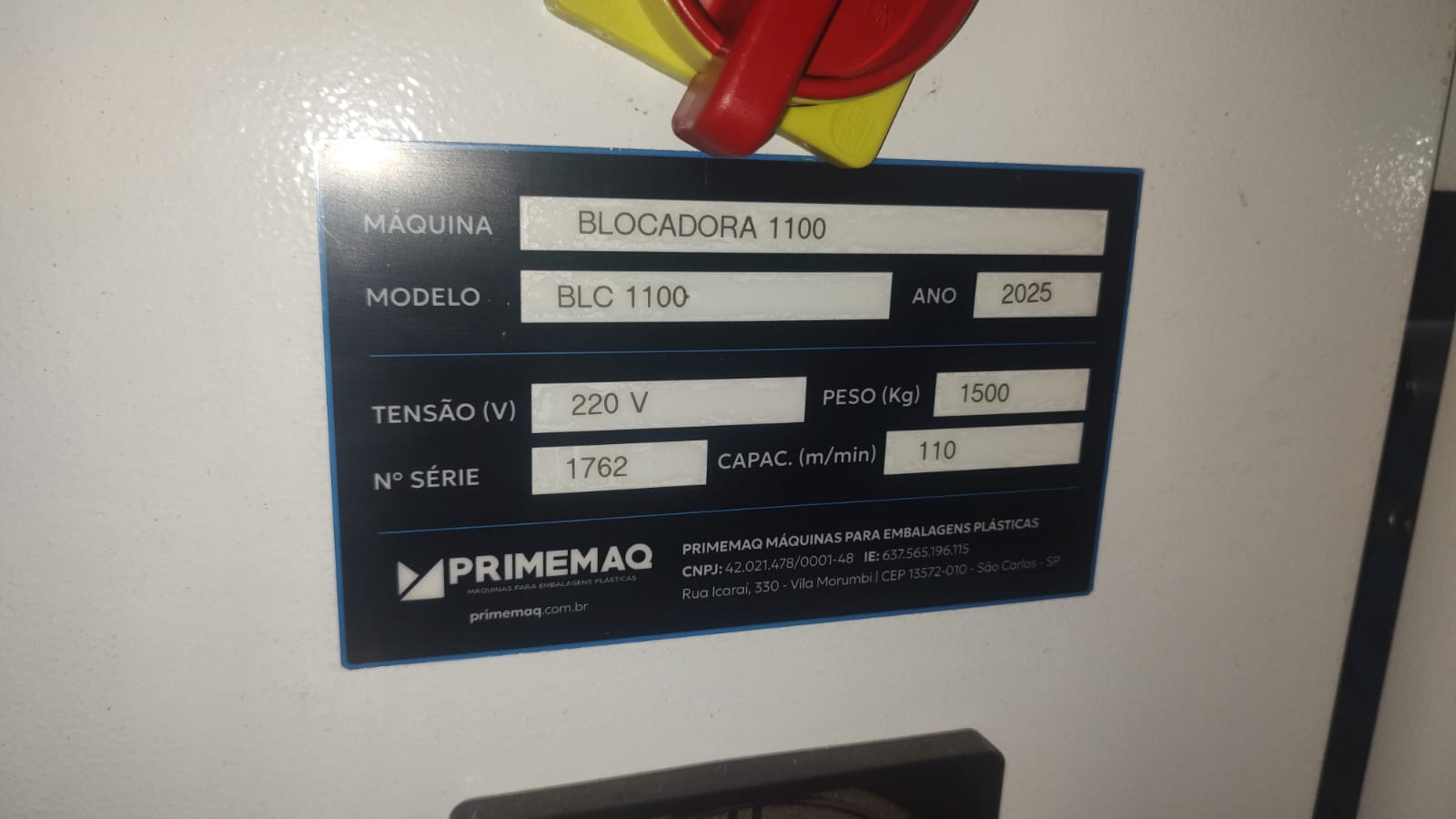 1 Blocadora Marca PRIMEMAQ 1100mm Ano 2025 zera MQ trabalhando;