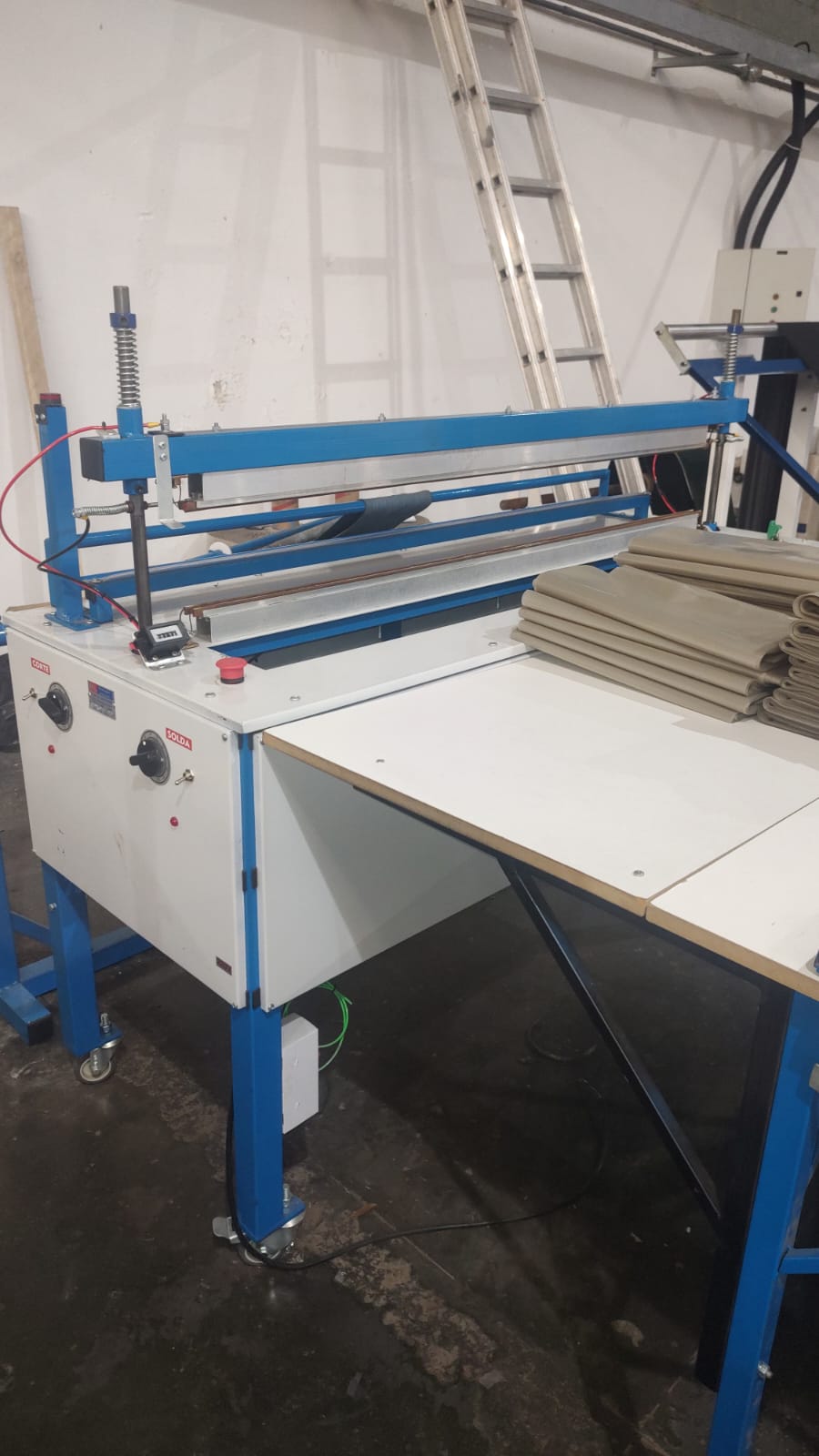 2 Corte Solda, 1 largura 850mm a outra de 700mm Marca PRIMEMAQ completo com triângulo coleiro já preparada para envelope de segurança;
